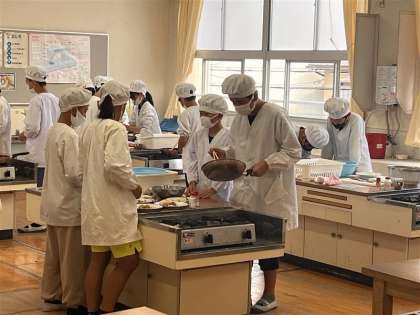 6月13日(金)、6年生が調理実習を行いました。内容は、『できることを増やしてクッキング』です。