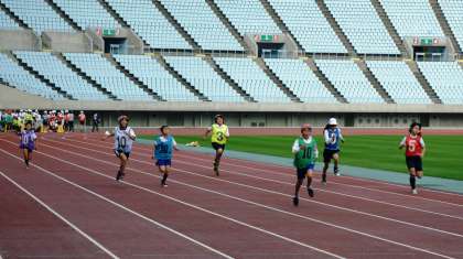 午前中は、北中島小・神津小・野田小と、午後は吉野小・福島小・大開小の児童とスポーツを通じて交流しました。