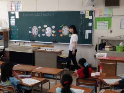 毎日の給食献立を考えてくださっている栄養教諭の方に来ていただき、「食」について学習する栄養指導がありました。