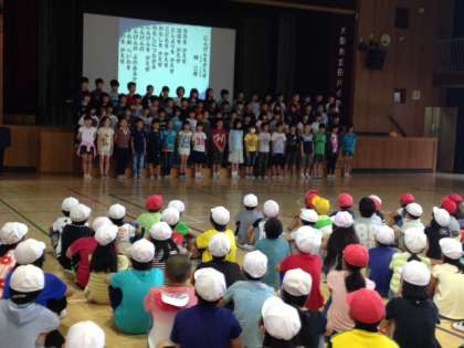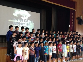 ひな壇に並んだ6年生は、それぞれが調べ、ヒロシマで感じたことを、1年生から5年生の前で、しっかりと発表していました。