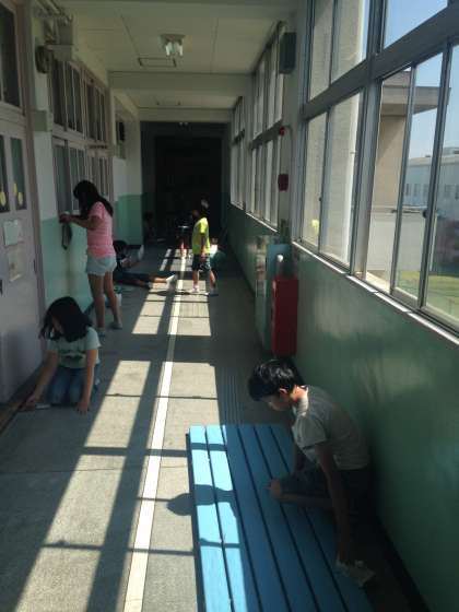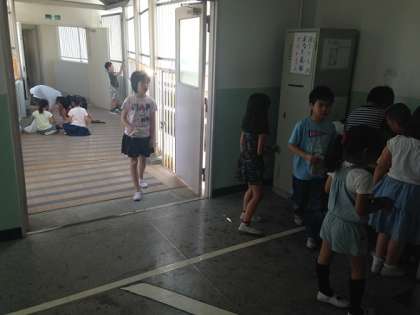 ふだんあまりしていない、ろう下や階段の隅などを中心に、全校のみんなが協力してがんばっていました。