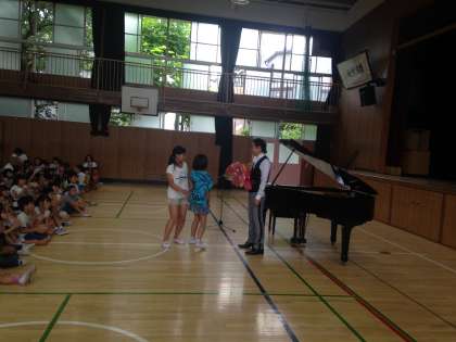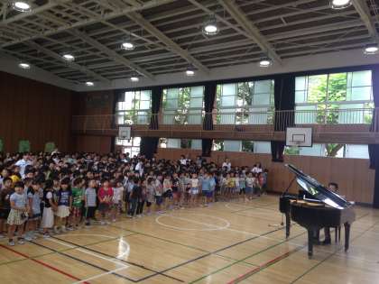 コンサートの最後には、みんなで80周年を祝うハッピーバースデーの曲や、田川小学校の校歌を歌いました。