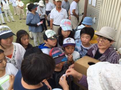 老人会の方が8チームに分かれ、そこに5年生の人が入って、一緒にプレーしました。