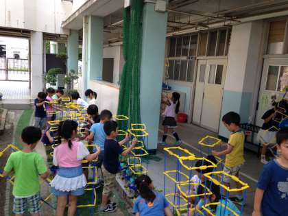 「あさがおって、こんなにおおきくなるん?」と聞いてくる子どもたち。