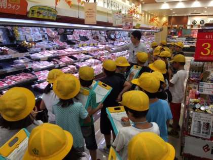 3年生が三津屋にあるスーパーマーケットに社会見学に行きました。季節を感じられる食材を入口付近に配置したり、食べきれないような食材を小分けにして販売したりする等、いろんな工夫があることを教えていただきました。普段入ることができない倉庫の中や惣菜作り様子なども見学せてもらい、実りのある社会見学となりました。