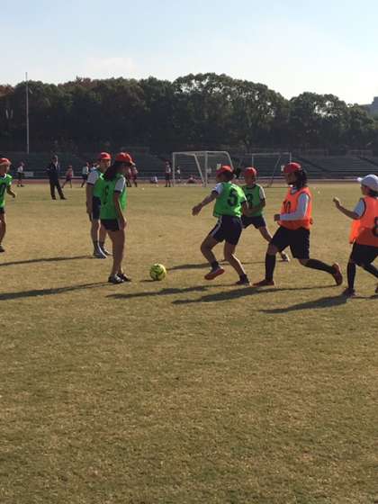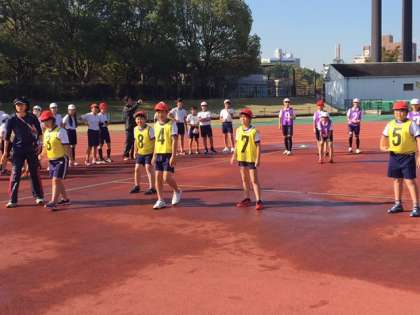 田川小学校は、午前中、長居第二陸上競技場でドッジボール・サッカーをしました。