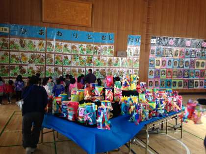 この日は工作を自分たちで運びました。鑑賞は明日・明後日ですが、きれいに掲示された自分たちの絵を、嬉しそうに見る様子が見られました。