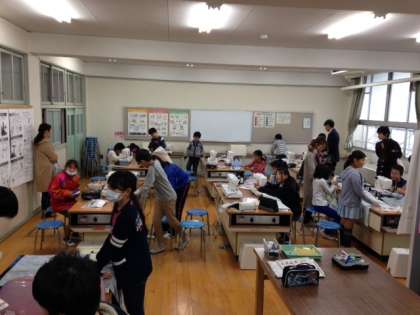 5−2は、家庭「わくわくミシン」でした。エプロンづくりに取り組んでいる様子をご覧いただけたと思います。ミシンやアイロンの使い方も、少しずつ上手になってきました。