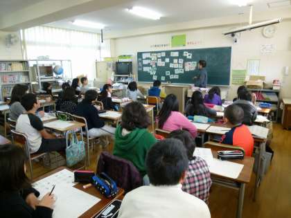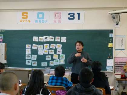 加島小学校の栄養教諭から、食育のまとめとして、健康な体を作るために必要な正しい食生活についての話をしていただきました。なお、今の6年生が中学1年生になるときから、中学校も給食(弁当形式)になります。