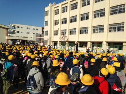 昨年度の地域防災訓練から一歩進めて、地域の方々が中心になって、学校まで避難するように取り組みました。ご協力いただいた地域・保護者の皆様、ありがとうございました。