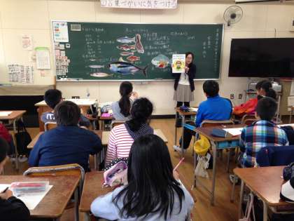 魚を食べることで、身体にどのようなよいことがあるのかを、いろいろな例を出して教えてもらいました。