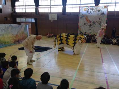 迫力ある演奏や美しい舞に、自然と拍手がおこり、劇では、大きなホランイ(トラ)が登場すると、本当に怖がっているような顔をしていました。