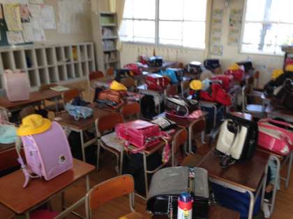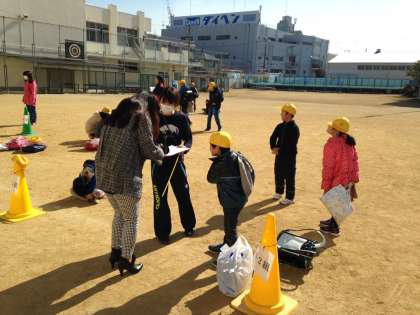 今回は、地震・津波からの一時避難訓練をした後、保護者の方に迎えにきていただきました。