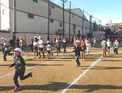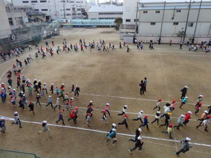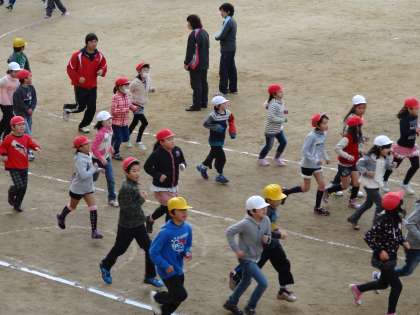 耐寒かけ足が始まりました。今年は朝のラジオ体操の後、運動場をみんなで走っています。授業でも長距離走のタイムを測っています。1.2年は5周、3・4年は8週、5.6年は12週です。かけ足週間の最後にはどれぐらいタイムが伸びているか楽しみですね。