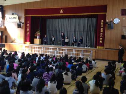また、修了式の後には、離任式も行われ、3月末で田川小学校を去る教職員の方々とお別れをしました。卒業生の何人かも参加し、温かい雰囲気で送ることができました。