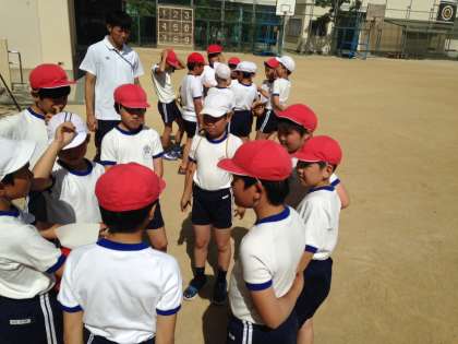 球技クラブでは、しばらくの間、野球をします。この日はグループでめあてを決めたり、練習内容を話し合ったりした後、練習・ゲームをしました。