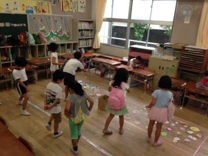 1年生は、はじめての田川フェスティバルです。全校児童で行うお祭りを楽しんでいました。