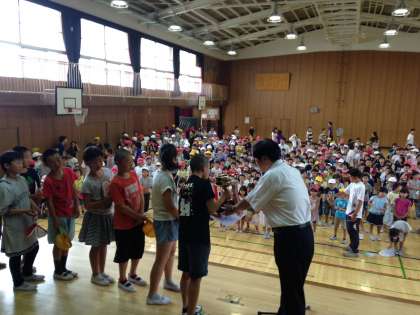 この日の児童朝会では、地域のソフトボールクラブの表彰がありました。
