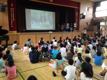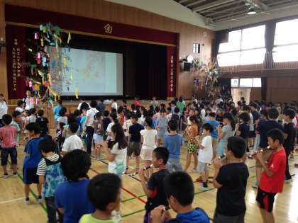 児童会の子どもたちが司会し、校長先生のお話の後に、集会委員会の子どもたちが「七夕のお話」を読み語りしてくれました。
