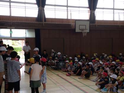 児童朝会で、給食委員会から、マスク忘れ0(ゼロ)の表彰がありました。