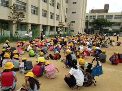 帰る準備をして、集団下校するという流れで訓練しました。