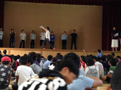 いつもとは少し違う先生たちの様子に、子どもたちも楽しそうに集会に参加していました。