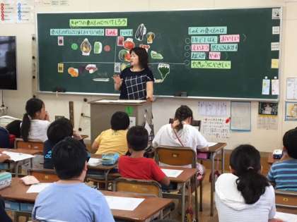 淀川区の栄養教諭の方に来ていただき、食について学習しました。