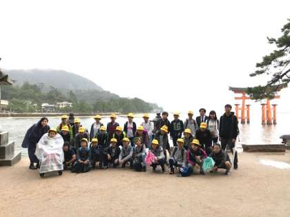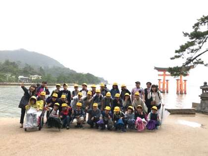 厳島神社の鳥居をバックに、クラスごとに記念撮影をしました。