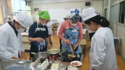 「お弁当のおかずを工夫して作ろう」という課題で、はじめに、タブレットでメニューを検索して、自分たちでご飯にあう献立を考えました。じゃがいも料理は必ず入れるようにしながら、どのグループも3〜5品のおかずを作りました。