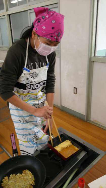 オムライス風にしたり、ふりかけを作ってみたり、はんぺんチーズ・チーズとじゃがいものボール風炒めを作ったりと、班ごとにいろいろ工夫していました。