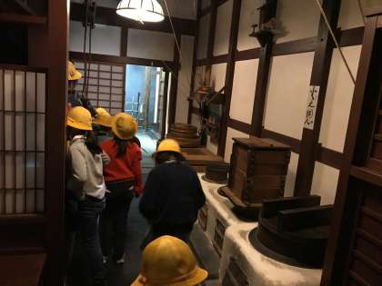 はじめに、電気やガスがない時代のくらしを、お話やクイズで施設の方から教えてもらい、その後、館内を見学しました。