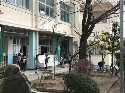 掃除時間中でしたが、少しの間、雪を楽しんでいました。