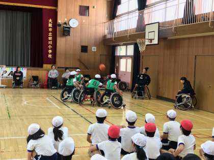 国際親善女子車いすバスケットボール大阪大会が、2月15日〜2月17日まで、大阪市中央体育館で行われます。そこで、その選手と交流をする取組があり、今年度は田川小学校が交流できることになりました。