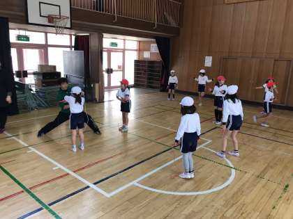 2年生は、学生の方のパフォーマンスをしっかりと見て、アームラップやクロスフリーズといった、かっこいい止め方に挑戦していました。終わった後、「先生、見て。」と、技を見せてくれる子どもたちがたくさんいました。