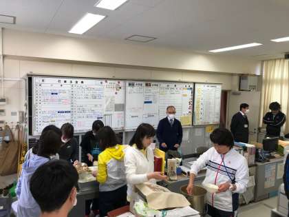 いつも食べている給食を、申し込んだ保護者の方や教職員でいただきました。
