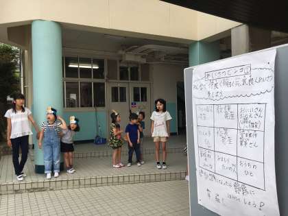 登校班の子どもたちが順番に早く登校して、みんなにあいさつをする「あいさつ週間」。新しく「あいさつビンゴ」が登場し、「ビンゴ」をめざして、みんな夢中で取り組んでいます。校長先生とのあいさつを求め、校長室につめかける子どもたちまで登場しました。このあいさつ週間だけでなく「あいさつ」の習慣が身に付くといいですね。