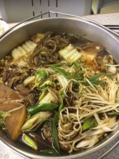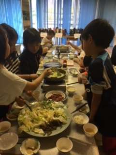 今日の夕食は、すきやきです。自分たちでコンロの扱い、火の調節などをしたり、具材を入れたりしました。お風呂上がりで暑い中、食べたすきやきでしたが、ほとんどの班が完食していました。とても、おいしかったそうです。