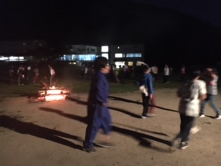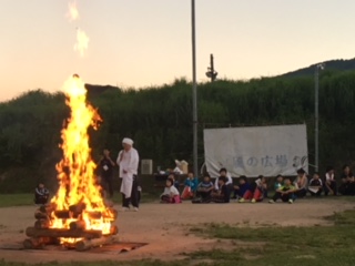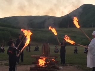 火の神が友情、勇気、感謝、希望、命の火を与えてもらい、キャンプファイヤーが始まりました。