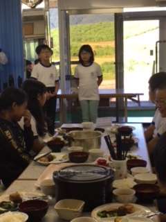 食事係が少し早く集まり、朝食の準備をしてくれました。かたづけも全員が積極的にできました。
