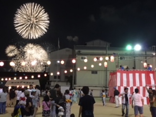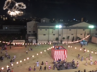 小学生の子どもたちは終了時刻の9時を守り、盆踊りの曲と太鼓の音に送られながら家に帰っていきました。子どもたちがいなくなると、すこしさびしくなりました。人がまばらになると地面がよく見えます。そこには、ほとんどゴミが落ちていないのです。参加者のみなさんのマナーの良さや多くの方の努力のおかげだと思いました。