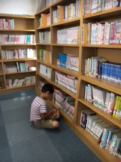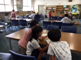 プール開放や宿題広場と同じころ、図書室開放も行われていました。夏休み前にかりた本を返却して新しい本をかりたり、静かに読書したりしていました。