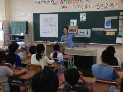 Hello. Nice to meet you. 今日は6年生に新北野中学校の英語教諭による出前授業がありました。来年中学生になる6年生たちは、英語の楽しさを学ぶと同時に、中学校の授業はどういったものなのか学習することができました。