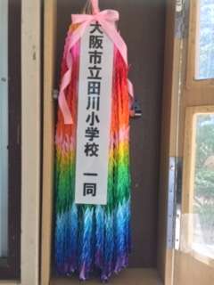 本日より学校公開週間として、いつでも自由に学校見学・参観していただくことができます。この週間にあわせて、正門を入ってすぐの所に「千羽鶴」が掲示してあります。これは6年生が修学旅行で広島へ行く際に持っていきます。平和の願いを込めて1〜6年生が協力しながら折った鶴です。そして小会議室前には落し物がおいてあります。2学期が始まってからのものです。一度、確認していただきますよう、お願いいたします。