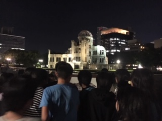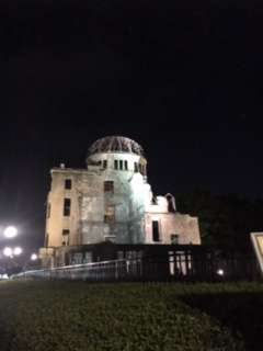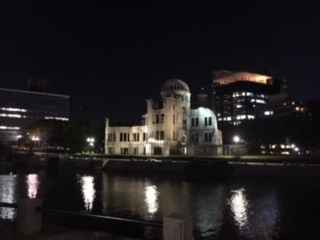 ライトアップされている原爆ドームの周りを散歩しに行きました。明日、詳しく回ることになっていますが、所々にある説明書きを立ち止まって読む姿が見られました。