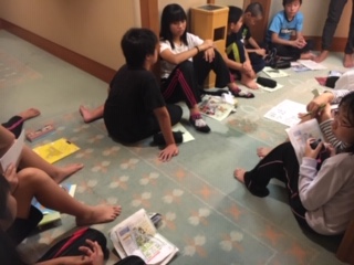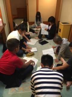 お風呂に入り、さっぱりしました。9時からは班長、室長会議が始まりました。今日の反省や明日の連絡事項などを中心に話が進んでいます。