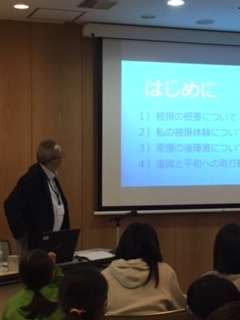 被爆された方から話を聞かせていただきました。幼稚園の時にお母さんと一緒にいる時に被爆されたそうです。当時の様子を聞かせていただきました。