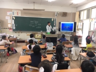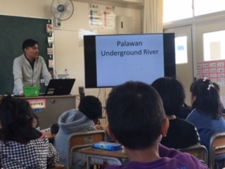 高学年の外国語活動を担当しているC-NETの先生が低学年にも指導しにきてくれました。まずは自己紹介で出身地のフィリピンについて写真を使って詳しく教えていただきました。「フィリピンに学校はありますか」「どんな動物がいますか」などの質問が出ました。授業後「フィリピンのことがわかった」「楽しかった」と外国語活動だけでなく、外国の文化にもふれた時間になりました。