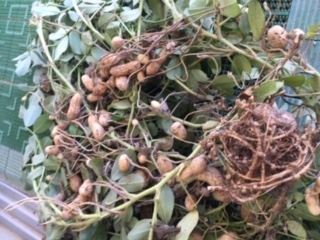 2年生の子どもたちが育てている学習園では落花生ができました。落花生は豆みたいなので、枝豆のように空中になるものだと思っていました。しかし落花生は地中にじゃがいものように実をつけてます。開花のあと花の子房柄が伸びて、土にもぐり実をつけるそうです。