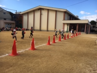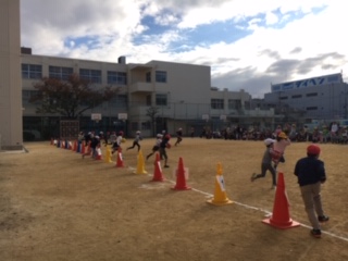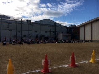 今週の集会では「班対抗折り返しリレー」をしました。1〜3年生はボールを持って4〜6年生はボールをつきながら走ります。11人に合わせたり、1年生にルールを確認したり、6年生がリードをうまくとってくれました。36班が運動場の横一列に並ぶのは初めてでしたが、なんとかリレーをすることができました。「楽しかった」という言葉がたくさん聞けました。