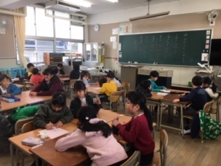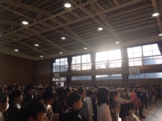 あけましておめでとうございます。学校に元気な子どもたちが戻ってきました。始業式では、講堂に朝日がさしこんでいますが、気温はとても低く、息が白くなっていました。校長先生のお話や冬休みのことなどの話があり、最後は校歌を歌って終わりました。1〜6年生全員で校歌を歌うのは最後です。短い期間の3学期ですが、体調に気を付けて元気に登校してほしいです。